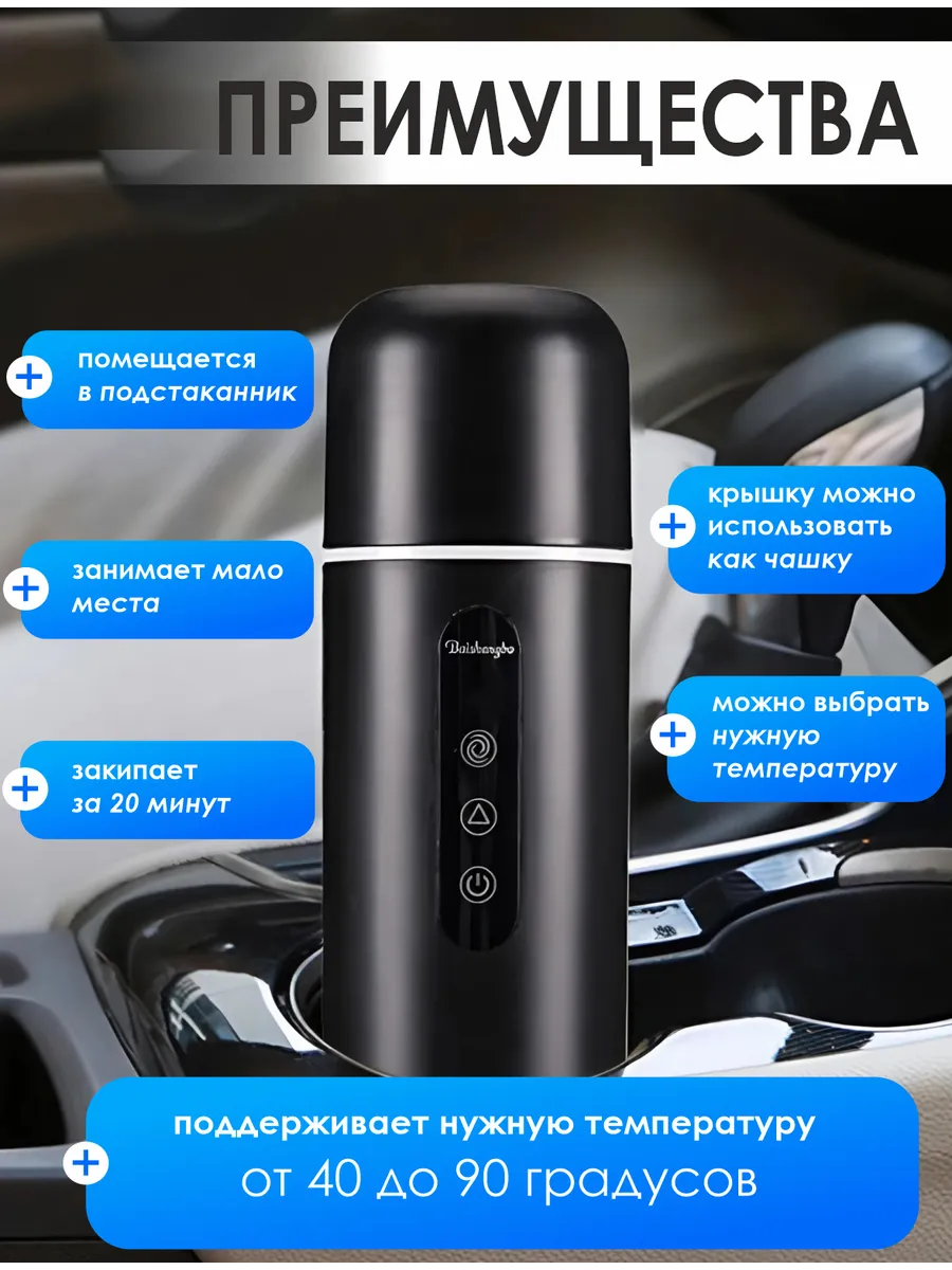 Кроме того, этот чайник для авто не только практичен, но и компактен, что позволяет разместить его в вашем автомобиле без лишнего дискомфорта. Он станет верным союзником для тех, кто ценит качественный отдых и комфорт на дороге.