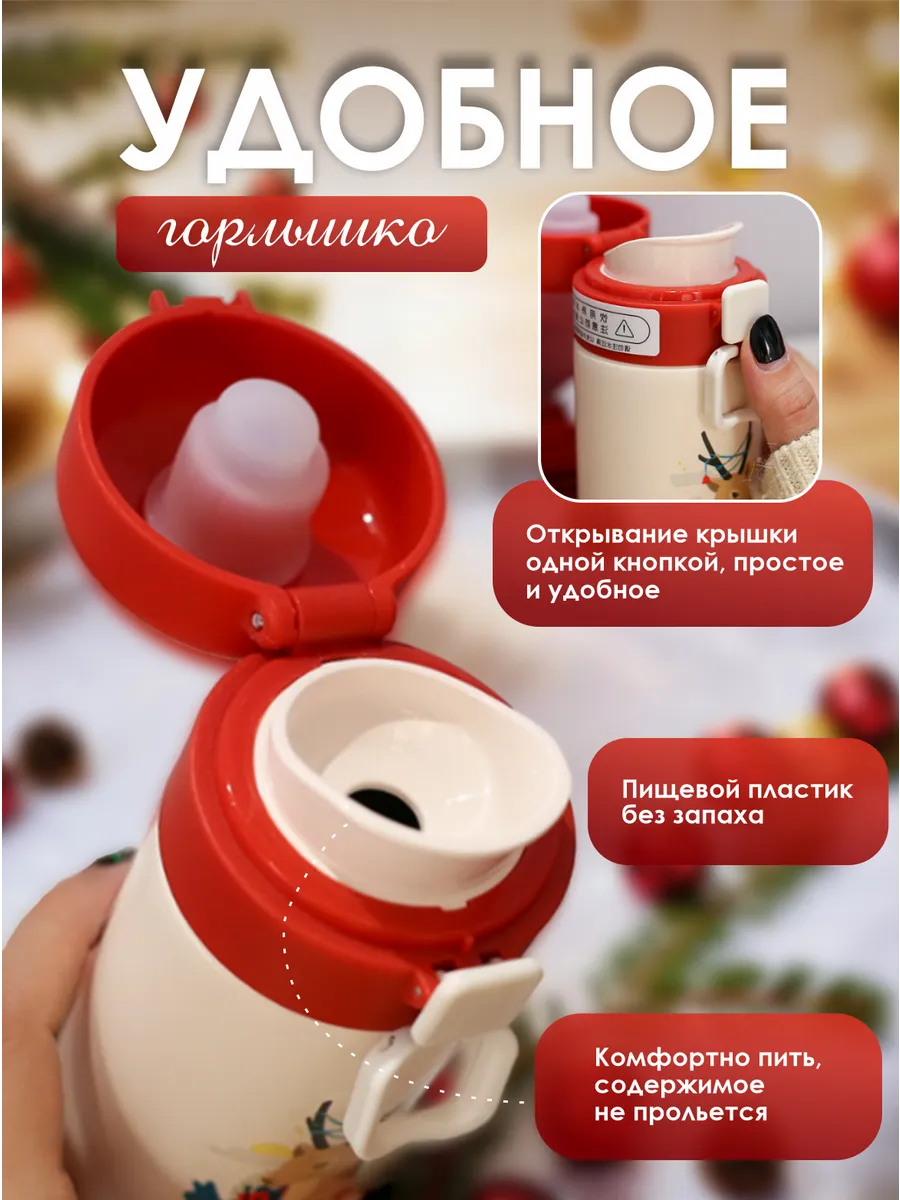 Яркий дизайн в белом и красном цветах привлечет внимание ребенка и сделает использование термоса еще более приятным. Такой аксессуар станет не только функциональным предметом, но и элементом стиля ребенка, что дополнительно стимулирует его самостоятельно заботиться о своем питьевом режиме.
